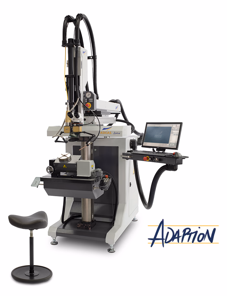 Im Bewusstsein, dass die Anwender der ASKIAS Adaption oft jahrelang in wechselnden Haltungen an der Maschine schweißen, haben wir ein eigenes Arbeitsergonomie-Konzept entwickelt. Für die perfekte Haltung beim Laserschweißen sorgen der ergonomische Move-Hocker, frei positionierbare Armablagen und Joystick sowie das um 180° schwenkbare Binokular. Sie können Sie die Achsen der Anlage variabel so verstellen, dass Sie auch an größeren Bauteilen stets ergonomisch arbeiten können. Das Kamerasystem sowie ein elektronisch gesteuerter Shutter, unser Magnetspannsystem Phos-Ball, eine separat erhältliche CNC-gesteuerte 4. Achse, Drahtvorschub und viele weitere Zubehörteile unterstützen eine effiziente und komfortable Arbeit an unseren Laserschweißanlagen.